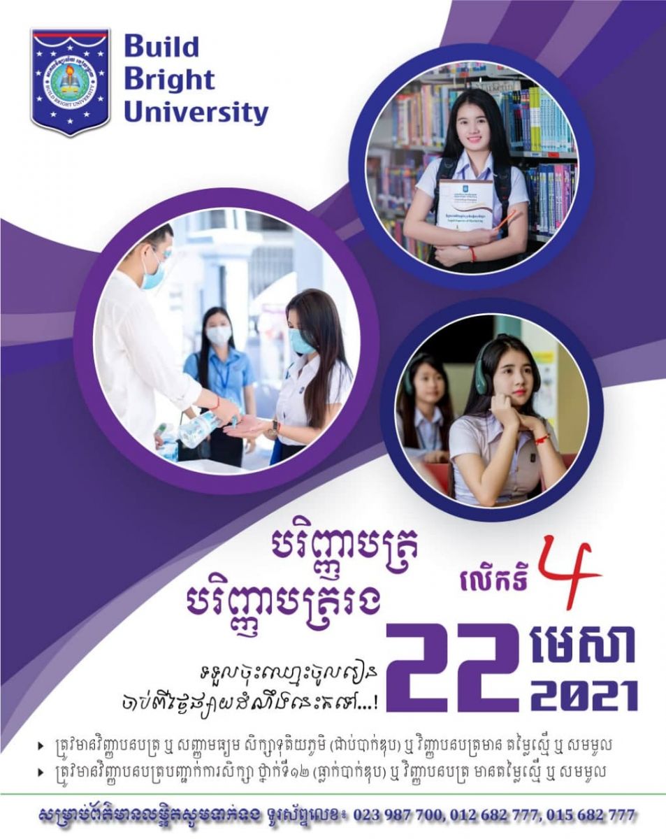 Tel: 023 987 700, 012 682 777, 015 682 777 ឬ Facebook Page: bbu.edu.kh