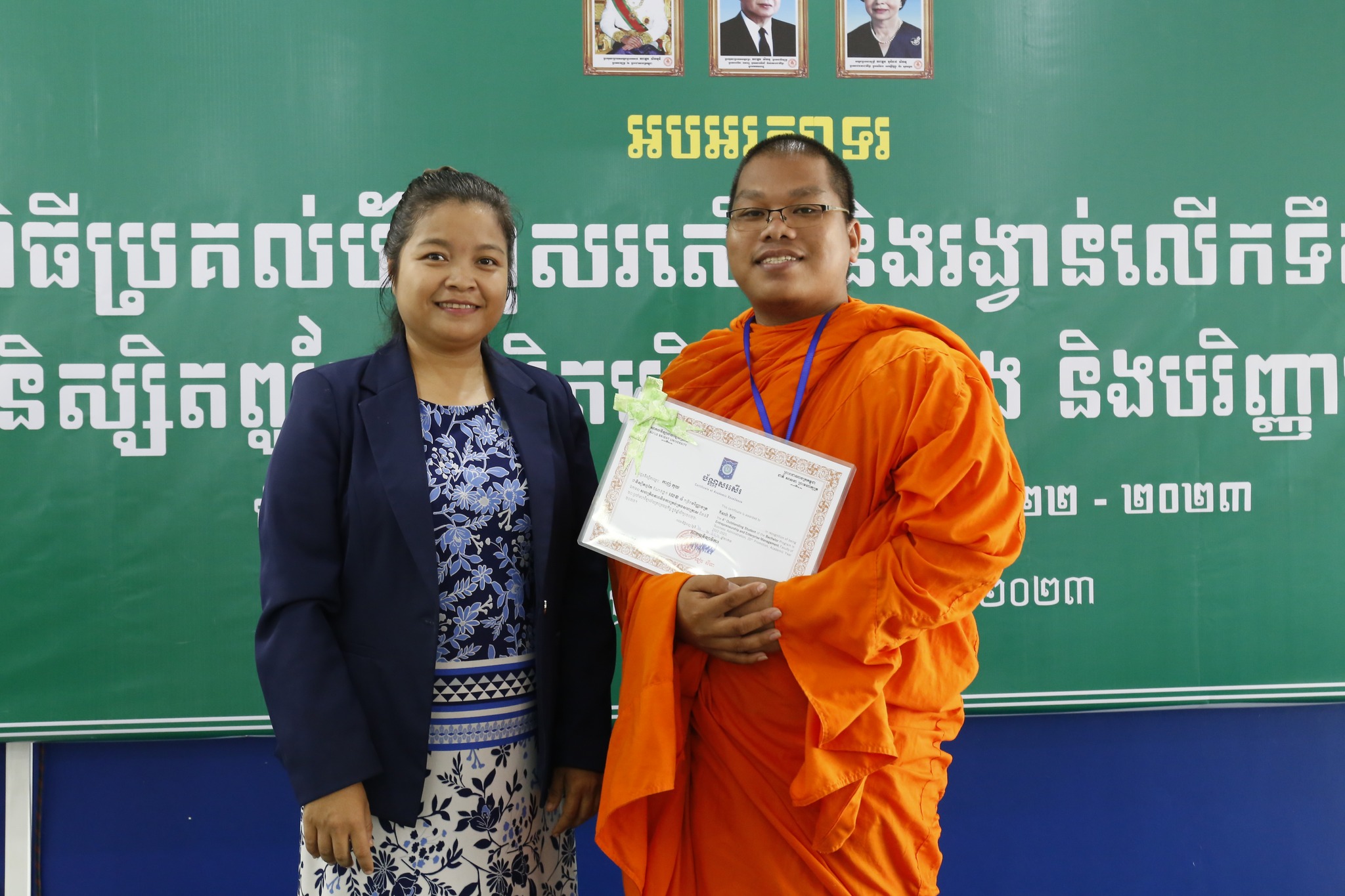 និស្សិតឈ្មោះ កិង ខង ចំណាត់ថា្នក់លេខ១ ជំនាន់ទី២១ ជំនាញ ការបង្រៀនភាសាអង់គ្លេសជាភាសាបរទេស នៃមហាវិទ្យាល័យសិល្បៈ មនុស្សសាស្រ្ត និងភាសា។