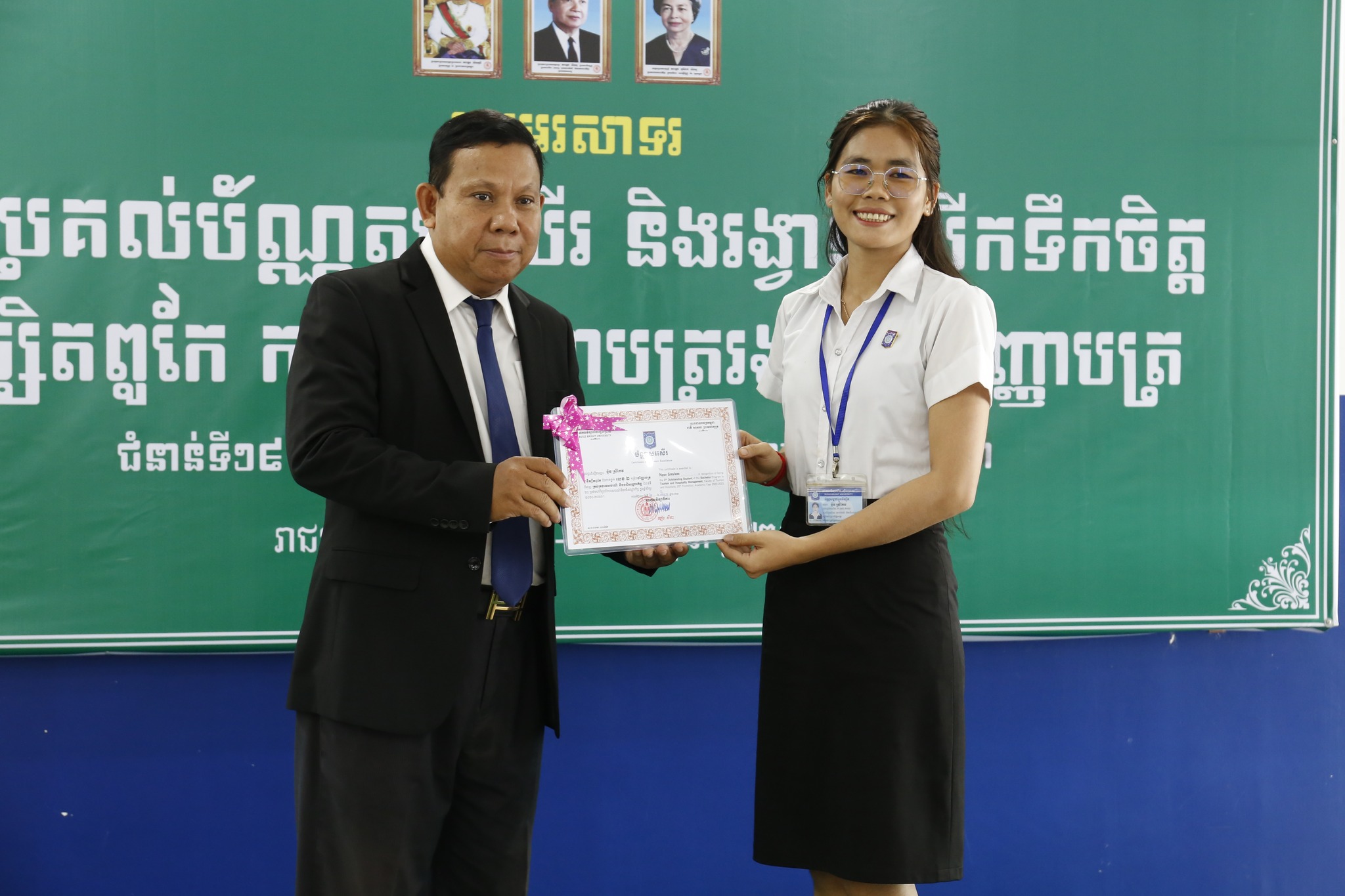 និស្សិតឈ្មោះ ហ៊ិន សុម៉ាលិស ចំណាត់ថា្នក់លេខ២ ជំនាន់ទី២១ ជំនាញ ការបង្រៀនភាសាអង់គ្លេសជាភាសាបរទេស នៃមហាវិទ្យាល័យសិល្បៈ មនុស្សសាស្រ្ត និងភាសា។