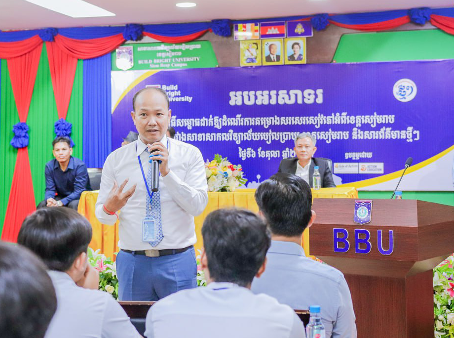 Build Bright University Siem Reap Branch and Digital Media recently launched a book writing project on the potential of Siem Reap Province on October 6, 2023 under the chairmanship of Mr. CHUON Phearun, Branch Director of Build Bright University, Siem Reap Province and Mr. Ky Sok Lim, Founder of New Digital Newspaper. The project aims to train research, compilation, writing and book publishing skills.Build Bright University of Siem Reap and Recent Digital News (thmeythmey.com) have teamed up to produce a 200-page book on the potential of Siem Reap. The inauguration ceremony was also attended by more than 60 students.